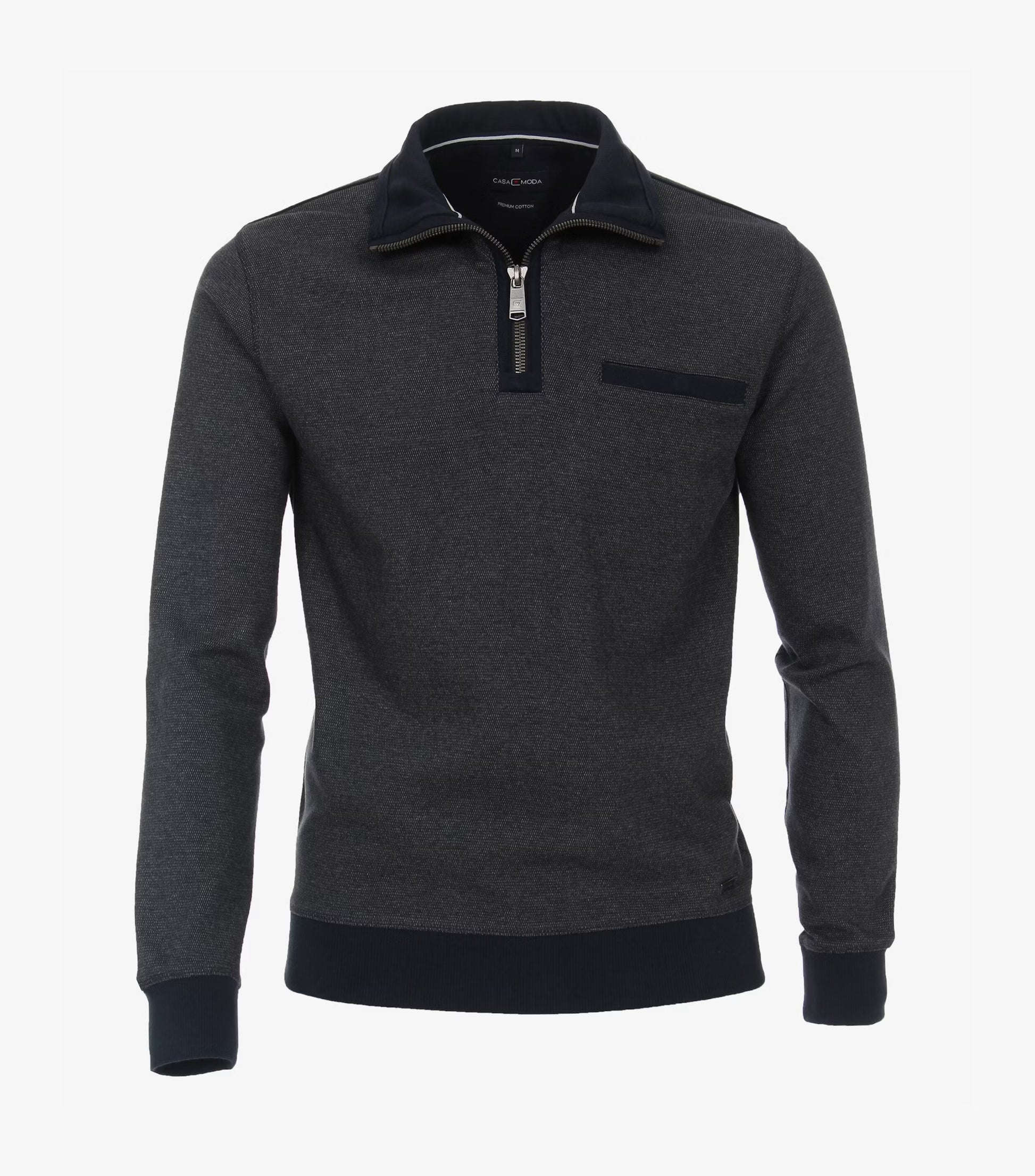 Casa Moda Troyer Half Zip Sweatshirt 105 - Grey/Navy