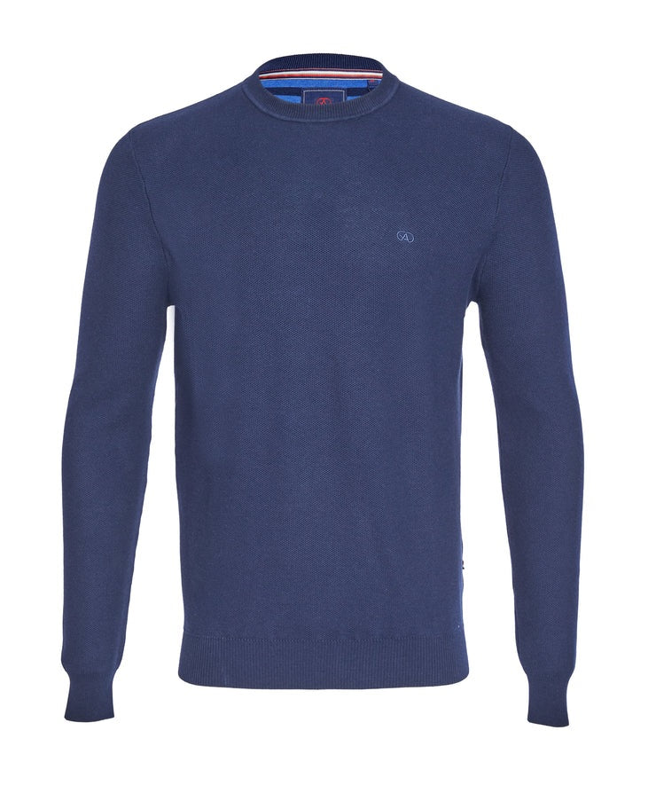 Crafted from 100% premium cotton, the Hook crew-neck waffle-knit jumper in navy offers a luxuriously soft feel that can be styled up or down for any occasion.