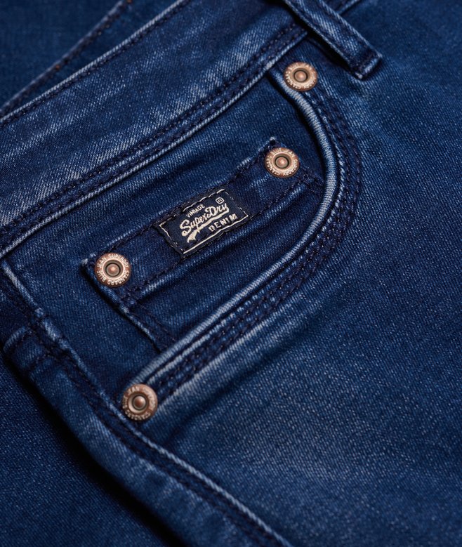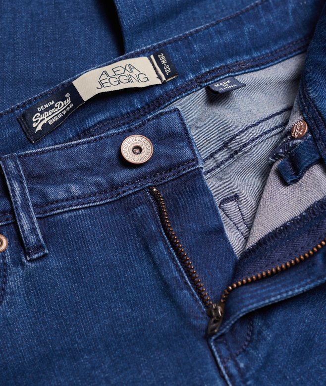 Superdry women's Alexia jegging jeans.These denim jegging jeans feature a zip fly, two back pockets, and two faux front pockets and a coin pocket. The jeans are finished with a Vintage Superdry Denim patch on the coin pocket and a leather Superdry badge on the back of the waist.
