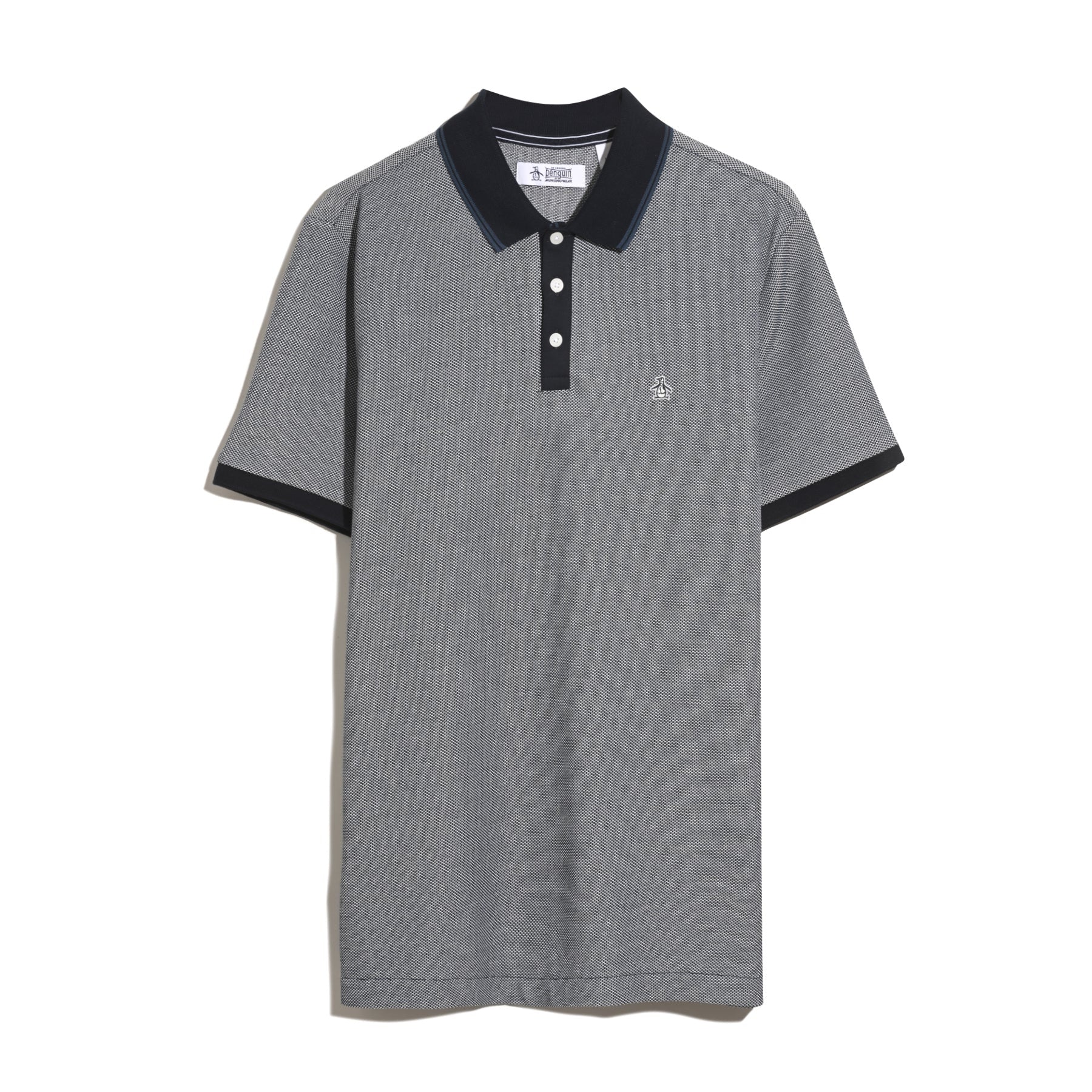 Upgrade your casual style with this patterned Original Penguin polo shirt. The cotton pique polo shirt features short sleeves and a classic polo collar, which makes it an adaptable separate for a variety of casual occasions. Comfortable pique fabrication adds texture to the classic design, while a slim fit provides a modern silhouette. With its dynamic tricolour design, this men's polo shirt will make a splash wherever you wear it.