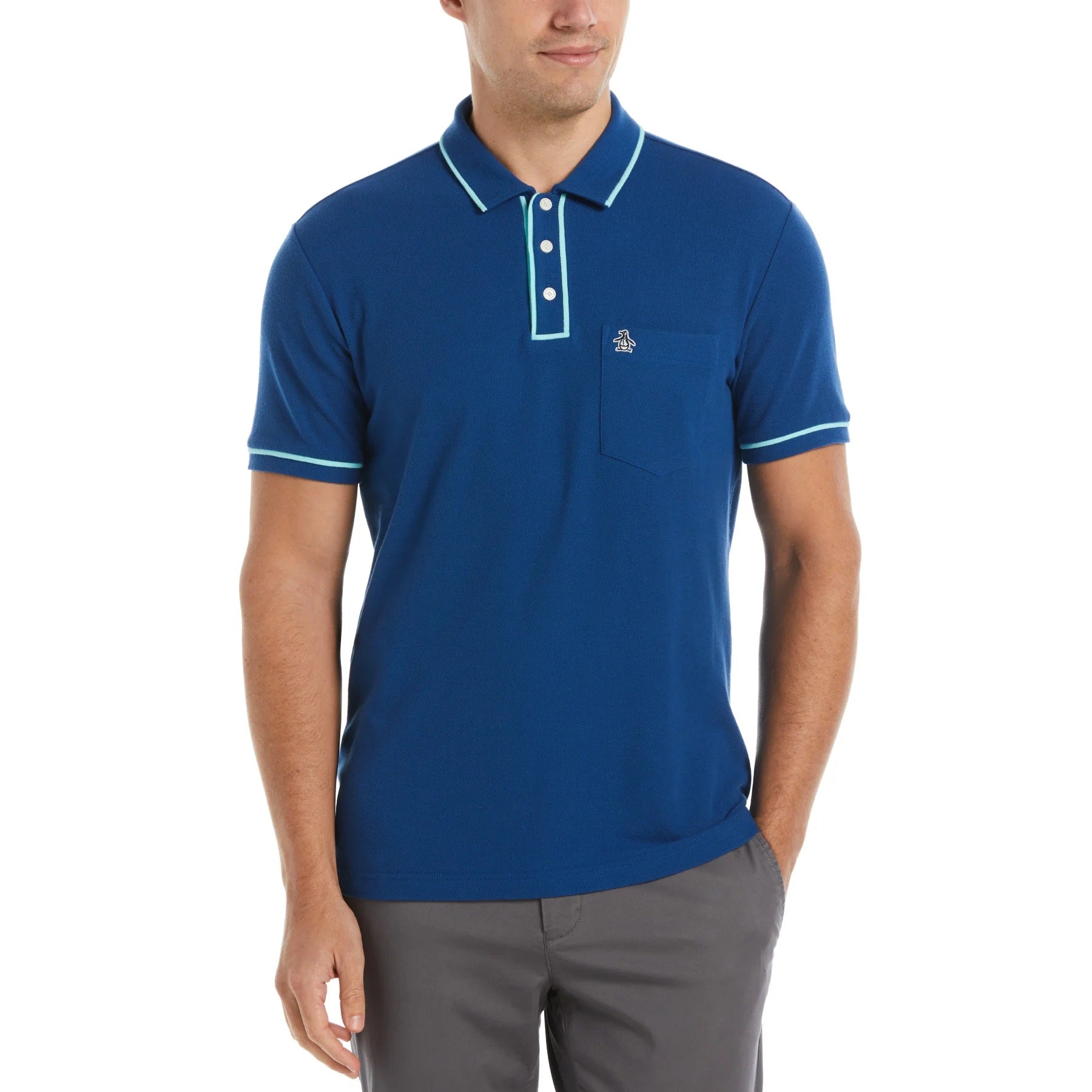 Continuing the legacy of our classic The Earl men’s polo, this Original Penguin design is made from 100% organic cotton for breathability and luxurious softness. Pique fabrication gives the material a sophisticated textured look, while contrast-colored piping along the collar, placket and cuffs adds the visual punch that The Earl is known for. Our mascot Pete the penguin appears on the chest pocket of the polo shirt, adding his seal of approval to the design.