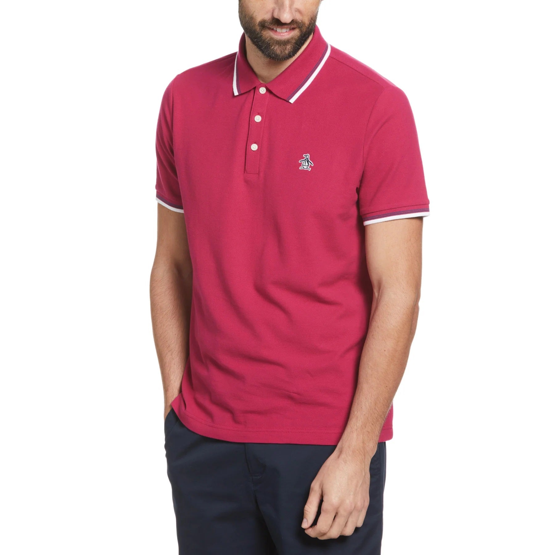 Every guy needs a solid polo shirt in their wardrobe and this Original Penguin one has you covered for style and comfort. Made from 100% organic cotton, it's soft and breathable and pique fabrication creates a subtle texture you can see and feel. A tipped collar pulls the look together and Pete offers his stamp of approval on the chest. Pair it up with jeans, chinos, or shorts, it's a versatile short sleeve top perfect for hanging with your buddies or going out for date night.