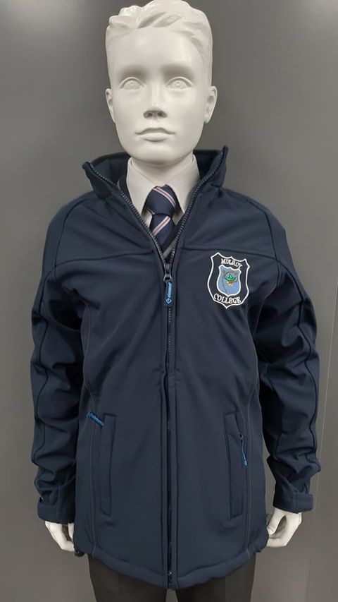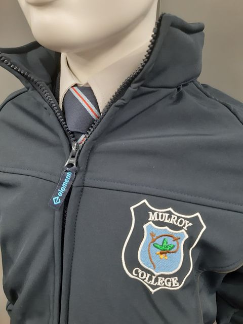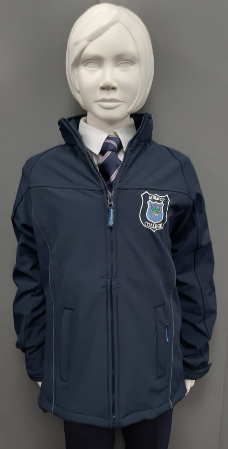 Mulroy College Soft Shell Jacket With Concealed Hood suitable to be worn by both boys and girls.