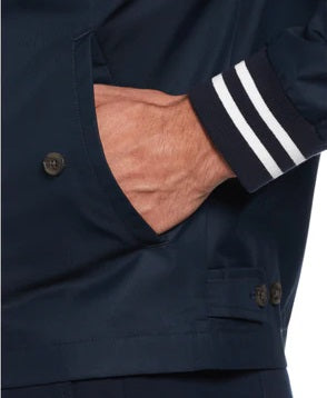 This men's jacket from Original Penguin Men's Jacket is the epitome of style and functionality for the modern man seeking versatility in his outerwear. Featuring a full zip collar and lightweight 2/2 twill fabric with stretch, this jacket for men offers a comfortable fit and feel. The water-resistant material helps you stay dry and protected in unpredictable weather. Complete with side pockets and button closure, this men's coat offers extra storage space too, making it a must-have addition to your everyday wardrobe.